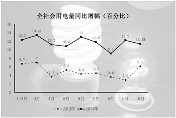 國家能源局14日公布,10月份全社會用電量同比增長6.1%,增幅比9月大幅回升3.2個百分點,結(jié)束了前兩個月連續(xù)下跌的局面。專家表示,作為經(jīng)濟(jì)先行指標(biāo),用電量與整體經(jīng)濟(jì)趨勢一致,它的回升預(yù)示著經(jīng)濟(jì)在回暖企穩(wěn)。但是單月數(shù)據(jù)回升還不足以得出趨勢性結(jié)論,當(dāng)前我國經(jīng)濟(jì)企穩(wěn)的基礎(chǔ)仍未完全鞏固。