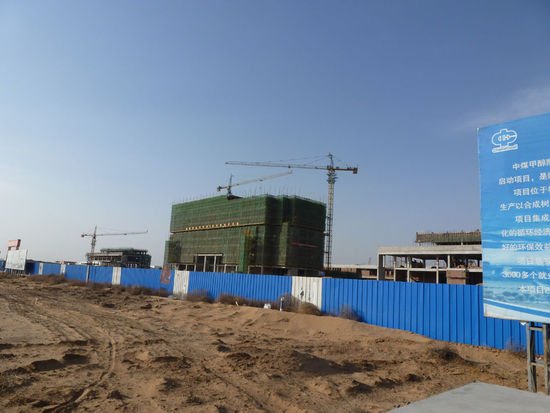 根據(jù)工地旁四面巨大的廣告牌,記者得知在建工程叫作“煤制甲醇醋酸系列深加工及綜合利用項目”,是中煤集團與陜西省政府簽訂的《戰(zhàn)略合作框架協(xié)議》的重要體現(xiàn),也是陜西省規(guī)劃的“十二五”重點工程。