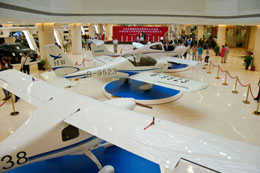 二、商務(wù)機(jī)展區(qū),是由無限航空打造的中國首家私人飛機(jī)展銷交易中心,分為商務(wù)機(jī)體驗(yàn)區(qū)、飛行用品商店、小型飛機(jī)實(shí)物展示等部分;