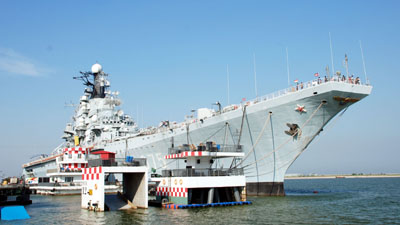 天津?yàn)I海航母主題公園地處濱海新區(qū)旅游區(qū)核心區(qū)域,為國(guó)家4A級(jí)景區(qū),是以“基輔”號(hào)航母為主體的大型軍事主題公園!盎o”號(hào)航母曾是俄羅斯基輔級(jí)航空母艦的首艦,在退役后出售給中國(guó),2000年運(yùn)抵天津。2010年,濱海航母又推出好萊塢大型實(shí)景海戰(zhàn)表演劇“反擊風(fēng)暴”,豐富了航母旅游資源。2011年,濱海航母主題公園收入突破1億元,成為天津市首個(gè)收入過億的單一景點(diǎn)。