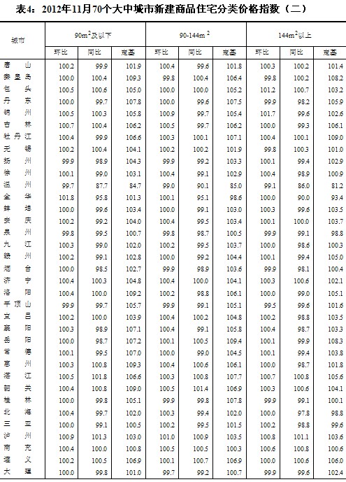 。ǘ┡c去年同月相比,70個大中城市中,價格下降的城市有49個,持平的城市有3個,上漲的城市有18個。11月份,同比價格上漲的城市中,漲幅均未超過4.7%,漲幅比10月份回落的城市有2個。