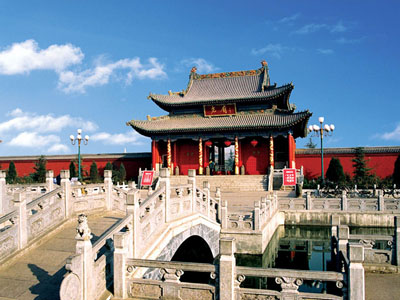 堯廟位于臨汾市秦蜀路南端,為山西省重點文物保護單位。堯廟原建于汾河西岸,晉元康中徙汾東,唐顯慶三年(685年)遷至今址,距今已1300余年,歷代均為國家級祭祀之所,并進行過多次修葺與擴建。堯廟現(xiàn)占地5.33公頃,主要有山門、王鳳樓、堯井亭、廣運殿、寢宮等古建筑群,以及距今已1600余年的漢代奇樹柏抱槐、柏抱楸、鳴鹿柏、夜笑柏等景觀。
