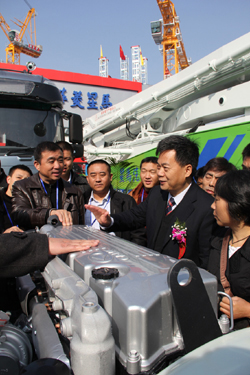 華菱星馬董事長(zhǎng)劉漢如自信地為嘉賓介紹華菱自產(chǎn)重型發(fā)動(dòng)機(jī) |