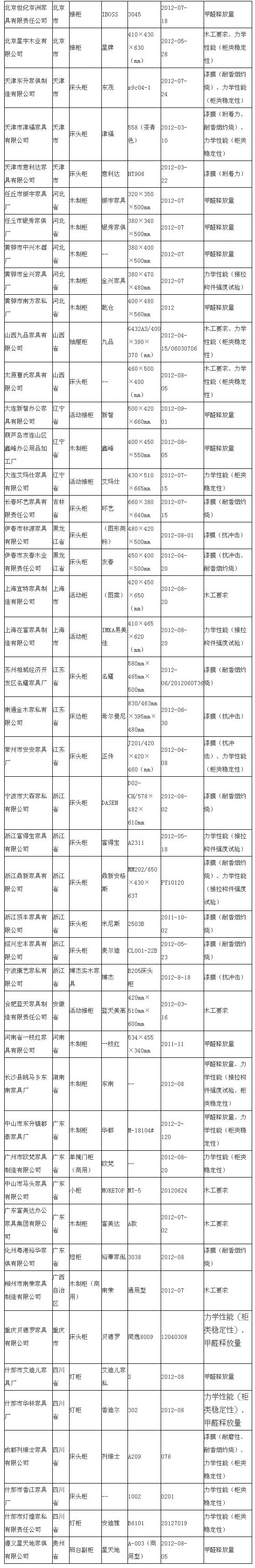 附:木(制)家具產(chǎn)品質(zhì)量國家監(jiān)督抽查產(chǎn)品及其企業(yè)名單
