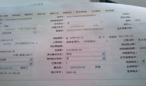 而雙方協(xié)議中規(guī)定的兩年保證期,被張曉萌忽略。他只告訴記者,湖南PICC參與了省內(nèi)大部分高速公路建筑工程項目一切險及第三者責(zé)任險的承保工作。
