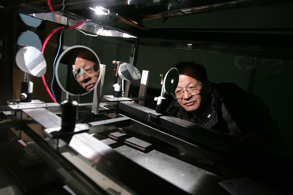 圖說:莊國順教授在儀器間測試數(shù)據(jù)。 圖片來源:復(fù)旦大學(xué) 劉暢/攝