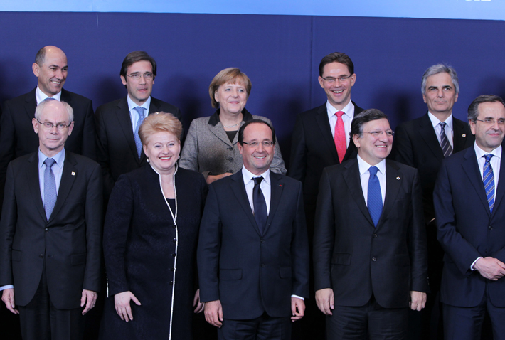 2012年底,歐盟領(lǐng)導(dǎo)人參加歐盟峰會合影。記者 高靜/攝 |
