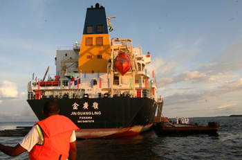 中國遠洋旗下的“金廣嶺”輪。新華社發(fā) |