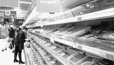 據(jù)英國(guó)《衛(wèi)報(bào)》15日?qǐng)?bào)道,大型超市Asda在其銷售的鮮牛肉意面醬被檢測(cè)出含有馬肉后,在全國(guó)范圍內(nèi)下架該產(chǎn)品。這是自“馬肉丑聞”以來(lái),首次在鮮肉制品中發(fā)現(xiàn)馬肉。圖為2月15日,Asda超市里的消費(fèi)者在挑選制作漢堡包的肉餡。