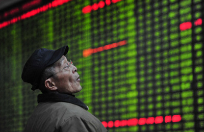 圖為當(dāng)日股民在江西九江市內(nèi)一家證券公司營業(yè)部關(guān)注股市行情。
