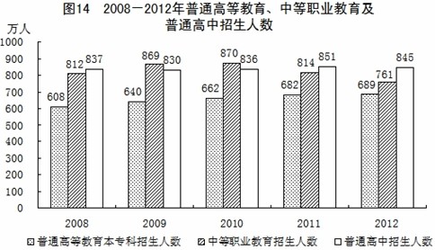 全年研究生教育招生59.0萬人,在學(xué)研究生172.0萬人,畢業(yè)生48.6萬人。普通高等教育本?普猩688.8萬人,在校生2391.3萬人,畢業(yè)生624.7萬人。各類中等職業(yè)教育招生761.0萬人,在校生2120.3萬人,畢業(yè)生673.6萬人。全國(guó)普通高中招生844.6萬人,在校生2467.2萬人,畢業(yè)生791.5萬人。全國(guó)初中招生1570.8萬人,在校生4763.1萬人,畢業(yè)生1660.8萬人。普通小學(xué)招生1714.7萬人,在校生9695.9萬人,畢業(yè)生1641.6萬人。特殊教育招生6.6萬人,在校生37.9萬人,畢業(yè)生4.9萬人。幼兒園在園幼兒3685.8萬人。