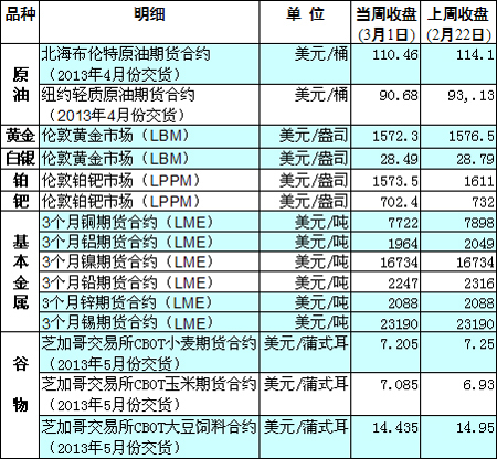 國際大宗商品期貨價格明細表[2013-03-04]