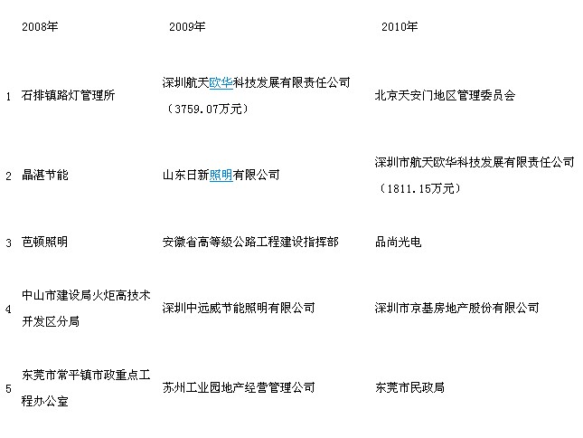 顯然,仔細(xì)梳理上述勤上光電的2008年到2011年上半年內(nèi)銷大客戶不難發(fā)現(xiàn)一個(gè)有趣的現(xiàn)象,即這些客戶一般只會(huì)出現(xiàn)一次。比如晶湛節(jié)能和芭頓照明出現(xiàn)在勤上光電2008年內(nèi)銷前五大客戶名單中,但隨后內(nèi)銷大客戶中便沒(méi)有它們的名字。