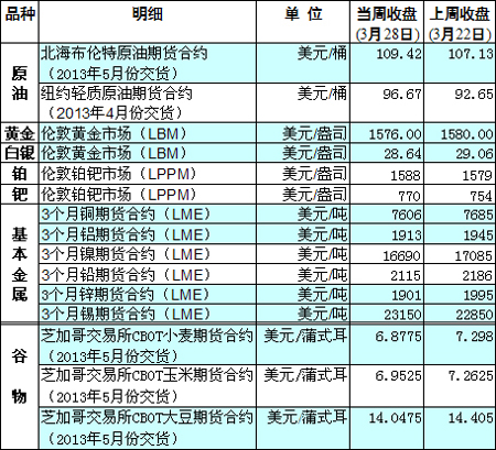 國際大宗商品期貨價格明細(xì)表[2013-04-01]