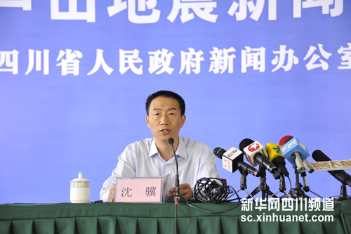 4月22日,四川省衛(wèi)生廳廳長沈驥介紹地震災區(qū)醫(yī)療救治、衛(wèi)生防疫等情況。 攝影/馬迪