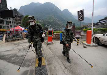 持續(xù)降雨也給衛(wèi)生防疫帶來困擾。在23日的重災(zāi)區(qū)寶興縣靈關(guān)鎮(zhèn)街道上,鎮(zhèn)上43歲的婦女楊玉梅說,鎮(zhèn)上像她們一樣為大家做飯的婦女有四五十個(gè),“現(xiàn)在鎮(zhèn)上居民喝的都是井水、山泉水,也不知道水質(zhì)到底是不是安全,能不能喝!碧J山地震衛(wèi)生應(yīng)急救援前線指揮部指揮長(zhǎng)、四川省衛(wèi)生廳副廳長(zhǎng)張祖蕓說,飲水不安全是一個(gè)突出問題,部分群眾還出現(xiàn)了腹瀉癥狀,衛(wèi)生部門已經(jīng)組織一臺(tái)水質(zhì)檢測(cè)設(shè)備運(yùn)往靈關(guān)鎮(zhèn)。
