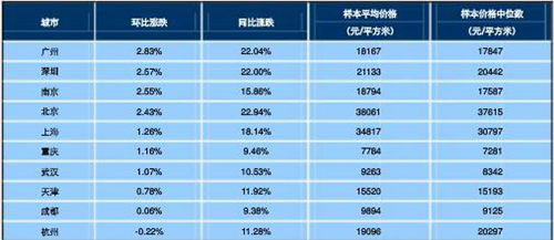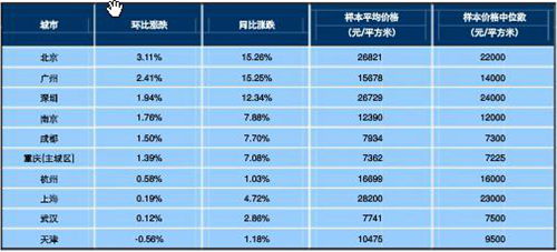 其中,北京、上海等十大城市住宅均價(jià)為17023元/平方米,環(huán)比上月上漲1.31%,與上年同期相比上漲7.89%。另外,按100個(gè)城市住宅價(jià)格的中位數(shù)計(jì)算,全國(guó)住宅價(jià)格中位數(shù)為6967元/平方米,環(huán)比上月上漲1.09%。
