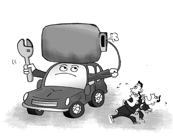 近年來,由于汽油價(jià)格上漲,天然氣價(jià)格相對(duì)低廉,天然氣動(dòng)力汽車越來越受到青睞。據(jù)中國道路運(yùn)輸協(xié)會(huì)公布的數(shù)據(jù)顯示,目前我國天然氣汽車保有量超過100萬輛,其中營運(yùn)車輛大約占1/2左右,大多數(shù)是出租車,其次是公交車,預(yù)計(jì)到2015年將超過150萬輛。記者采訪發(fā)現(xiàn),目前各地的天然氣汽車中,絕大部分為對(duì)傳統(tǒng)汽車進(jìn)行動(dòng)力系統(tǒng)改裝的汽車,俗稱“油改氣”。