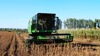 巴彥農(nóng)民在收獲大豆,目前巴彥縣的農(nóng)業(yè)生產(chǎn)已全部實(shí)現(xiàn)機(jī)械化