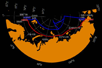 據(jù)不完全統(tǒng)計(jì),2011年夏季,通過東北航道的商船有30多艘;2012年夏季增加一倍,達(dá)到60多艘。航行時(shí)間跨度已從過去的兩三個(gè)月延長(zhǎng)到五個(gè)月(7月中旬到12月上旬)。2012年12月6日,一艘運(yùn)載LNG的船從挪威的哈默非斯特港出發(fā),穿過東北航道抵達(dá)日本的橫濱港,成為最晚一艘通過北極航道的運(yùn)載船只?傮w上,北極航道作為連接亞歐交通新干線的雛形已經(jīng)顯現(xiàn)。
