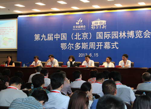 6月15日,第九屆中國(北京)國際園林博覽會鄂爾多斯周開幕式在北京園博會主展館舉行。