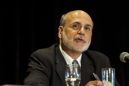 美聯(lián)儲(chǔ)主席伯南克10日表示,現(xiàn)在判斷美國(guó)經(jīng)濟(jì)已撐過財(cái)政緊縮為時(shí)尚早?紤]到疲弱的就業(yè)市場(chǎng)和低通脹率,美聯(lián)儲(chǔ)在“可預(yù)見的未來”仍需要繼續(xù)維持當(dāng)前寬松的貨幣政策。 圖為美聯(lián)儲(chǔ)主席伯南克當(dāng)日在位于馬薩諸塞州劍橋市的美國(guó)國(guó)家經(jīng)濟(jì)研究局發(fā)表講話。