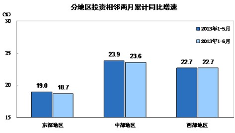 分地區(qū)看,1-6月份,東部地區(qū)投資86741億元,同比增長18.7%,增速比1-5月份回落0.3個(gè)百分點(diǎn);中部地區(qū)投資49509億元,增長23.6%,增速回落0.3個(gè)百分點(diǎn);西部地區(qū)投資44170億元,增長22.7%,增速與上月持平。