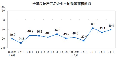 1-6月份,房地產(chǎn)開發(fā)企業(yè)土地購置面積15721萬平方米,同比下降10.4%,降幅比1-5月份收窄2.7個百分點;土地成交價款3699億元,增長7.5%,增速提高3.8個百分點。
