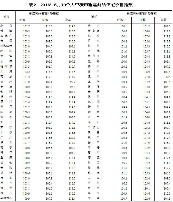 (二)與去年同月相比,70個(gè)大中城市中,價(jià)格下降的城市有2個(gè),上漲的城市有68個(gè)。6月份,同比價(jià)格上漲的城市中,最高漲幅為14.1%,漲幅比5月份回落的城市有11個(gè)。