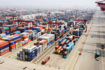 青島港外貿(mào)集裝箱堆場(chǎng)。新華社發(fā)(俞方平 攝) |