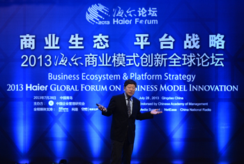 在當天舉行的“2013海爾商業(yè)模式創(chuàng)新全球論壇”上,海爾集團董事局主席、首席執(zhí)行官張瑞敏就互聯(lián)網(wǎng)時代的企業(yè)管理闡述了他的管理理念。