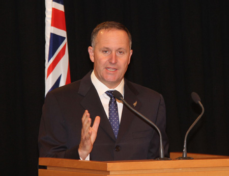 當(dāng)日,在新西蘭首都惠靈頓的議會大廈,新西蘭總理約翰·基在記者會上發(fā)言。