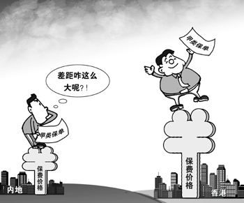 “在香港買保險的費率的確比內(nèi)地低,如重大疾病險,大致比內(nèi)地低兩至三成。若購買壽險附加重大疾病險,費率一般僅為內(nèi)地的1/2甚至1/3!盇IA友邦保險的一位代理人表示,由于香港保險市場競爭激烈,價格雖然便宜,保障范圍卻更廣。