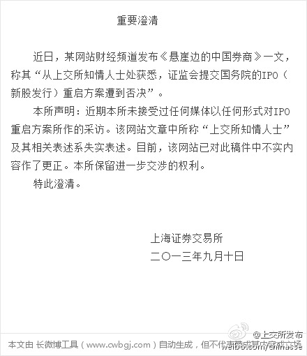 上交所澄清IPO重啟方案遭國(guó)務(wù)院否決傳聞