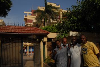 這座位于喀土穆利雅得區(qū)第16街區(qū)的5層居民小樓,就是中石油管道局蘇丹分公司和中油管道投產(chǎn)運(yùn)行公司蘇丹分公司所在地。圖為聚集在分公司門前的蘇丹雇員!