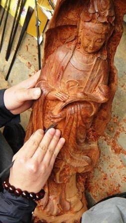 掌握嫻熟的木雕技藝,主要雕刻各種佛教、道教及民間宗教中的各種神像。神像雕刻完成之后,丹青先生還得親自主持開光儀式,通過此種儀式給他們所雕刻的神像開光,賦予神像“法力”。至此,造像工作才宣告完成。丹青先生既是木匠,又是火居道士,還是民間信仰中的儀式專家。