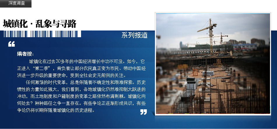 相對于中央強調(diào)新型城鎮(zhèn)化要以“人的城鎮(zhèn)化”為核心,不少地方仍舊陷入“重物輕人”的誤區(qū),城鎮(zhèn)化“大躍進”中暴露出諸多問題。記者從多地調(diào)研了解到,很多地方借著城鎮(zhèn)化的名義“圈地造城”,急于求成地改變城市面貌,結(jié)果演變成單純的爭項目、上工程,一些房地產(chǎn)開發(fā)商也大舉涌入中小城市占地,地方債務(wù)風(fēng)險和中小城市房地產(chǎn)泡沫問題令人擔(dān)憂。 | |