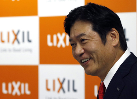 日本驪住集團(tuán)株式會(huì)社已與歐洲最大浴室設(shè)施生產(chǎn)商德國高儀集團(tuán)達(dá)成基本協(xié)議,將斥資約41.3億美元收購高儀集團(tuán),成為日本在德國的最大投資。圖為日本驪住集團(tuán)株式會(huì)社CEO藤森義明在新聞發(fā)布會(huì)上。