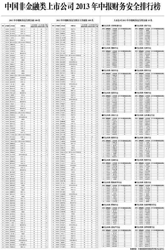 中國非金融類上市公司2013年中報(bào)財(cái)務(wù)安全排行榜