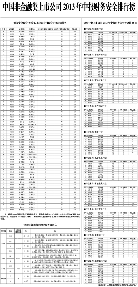 中國(guó)非金融類上市公司2013年中報(bào)財(cái)務(wù)安全排行榜