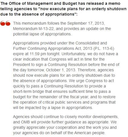 因美國(guó)兩黨就奧巴馬醫(yī)改分歧仍舊無(wú)法彌合,國(guó)會(huì)兩院沒(méi)有就新預(yù)算案達(dá)成一致,美國(guó)政府管理預(yù)算局(Office of
