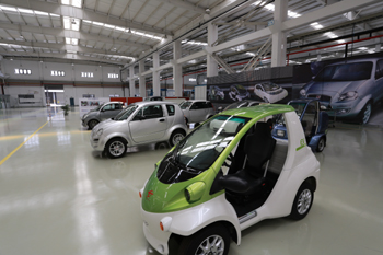 圖為臺(tái)灣敏實(shí)集團(tuán)淮安生產(chǎn)基地生產(chǎn)的新能源汽車 |