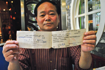 銀行存單上的承諾是盛忠奎夫妻的定心丸,這24年來他們從未懷疑到了2013年9月21日是否能夠從銀行取回約定的22萬元。存款到期的第二天,盛忠奎帶著兩張已經(jīng)發(fā)黃的油印存單去銀行,當年的迎賓路分理處已不見蹤影。在建行丹江口支行,一位魏姓負責人卻告訴他,這兩張存單早已經(jīng)失效,只能兌現(xiàn)8400元。