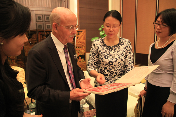 中共石家莊市委常委、宣傳部長高天與里夫金會談