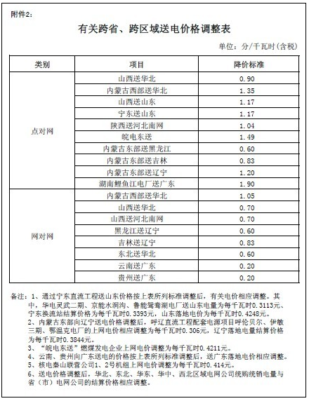 二、適當(dāng)降低跨省、跨區(qū)域送電價格標(biāo)準(zhǔn),具體降價標(biāo)準(zhǔn)見附件2。