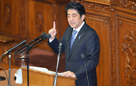 日本首相安倍晉三15日在國(guó)會(huì)發(fā)表施政演說(shuō),表示要繼續(xù)以擺脫通貨緊縮、實(shí)現(xiàn)經(jīng)濟(jì)增長(zhǎng)為目標(biāo)。