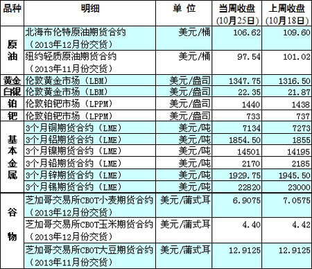 國際大宗商品期貨價格明細(xì)表[2013-10-28]