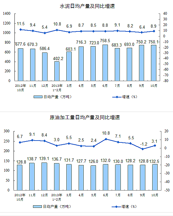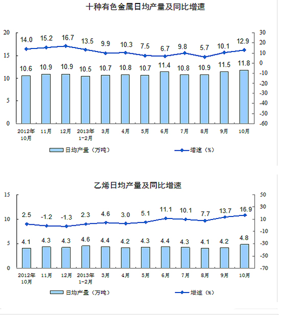 2013年10月份規(guī)模以上工業(yè)生產主要數據