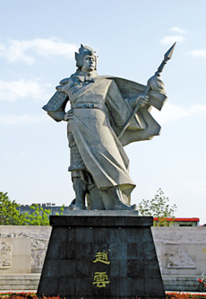漢末軍閥混戰(zhàn),趙云受本郡推舉,率領(lǐng)義從加入白馬將軍公孫瓚,后趙云在鄴城與劉備相見,從此追隨劉備南征北戰(zhàn),建立了不少戰(zhàn)功。歷史上趙云曾兩次救主,建安十三年九月曹操率精銳部隊(duì)南征荊州,在當(dāng)陽(yáng)長(zhǎng)坂包圍劉備人馬,劉備突圍而走,妻子和后主劉禪走失于亂兵之中,趙云帶著劉禪,保護(hù)甘夫人英勇力戰(zhàn),沖出重圍。自此,趙云單騎救主的故事為世人傳為佳話。建興七年(公元229年),趙云病逝。后主劉禪于景耀四年追謚趙云為順平侯。1958年毛澤東在天津接見正定縣委書記楊才魁時(shí)說(shuō):“正定是個(gè)好地方,那里出了個(gè)趙子龍”。