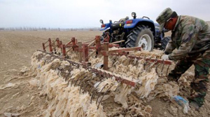 2013年,新疆又投入3800萬元“凈土工程”專項資金,在13個縣市開展農(nóng)田廢舊地膜污染綜合治理,同時通過以舊換新的形式,對農(nóng)民回收殘膜和使用0.01mm以上厚度標準地膜進行補貼。此外,國家農(nóng)業(yè)清潔生產(chǎn)地膜回收項目將在新疆部分縣市實施,扶持地膜回收企業(yè)并建立殘膜回收及資源化利用的長效運轉(zhuǎn)機制。